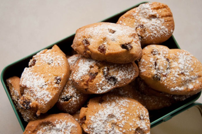 Travaillez énergiquement votre pâte et, à la fin, ajoutez les raisins ramollis. Puis, formez un boudin d’un diamètre de 5 à 6 cm, et coupez-le en tranches d’environ un demi-centimètre. Enfin, donnez-leur une forme de losange ou allongez-les simplement. Vos biscuits sont prêts à être enfournés.