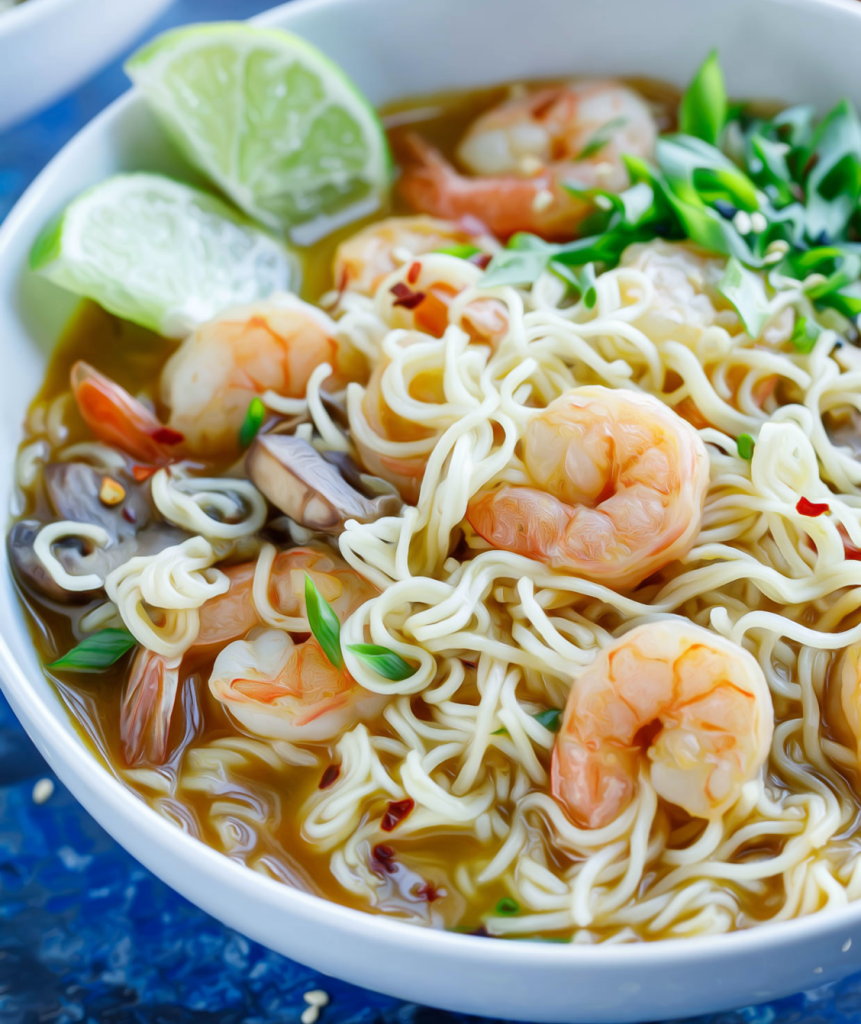 Vous trouverez également d’autres déclinaisons de cette recette de ramen aux crevettes comme cette variante de cette recette aux crevettes avec des morceaux de porc.